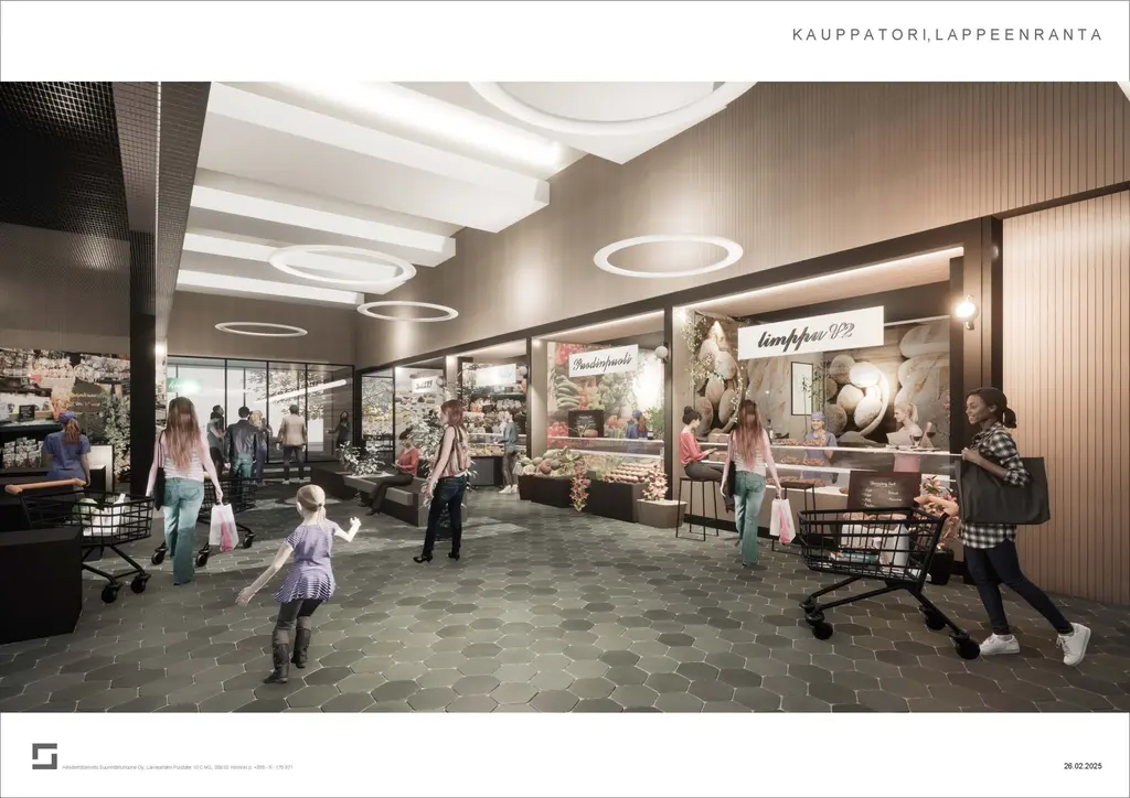 Kuva Eekoon hankekehityssuunnitelmasta, näkymä Lappeenrannan kauppahallin sisältä