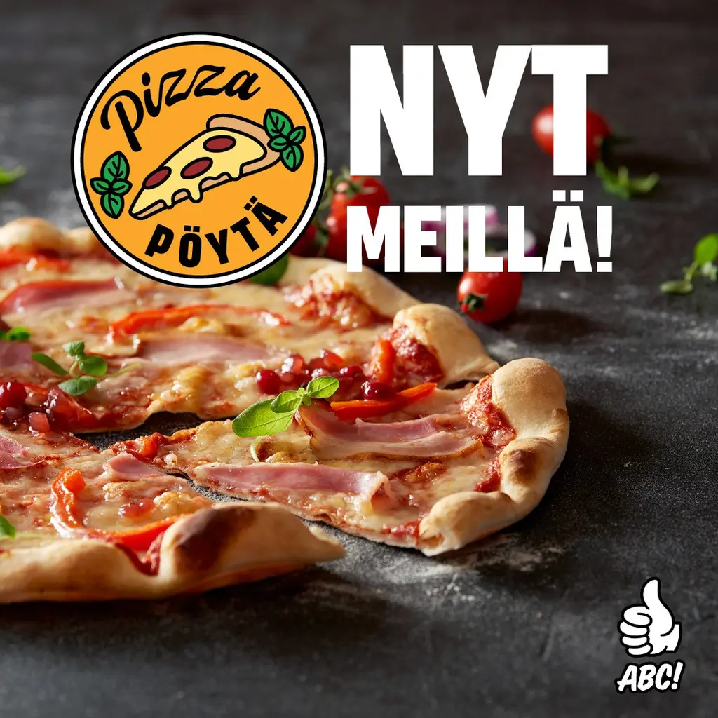 Löydät runsaan ja herkullisen ABC Pizzapöydän nyt myös ABC Viipurinportista Lappeenrannasta. ABC Pizzapöytä on herkkusuiden vaihtoehto perinteiselle ja maukkaalle ABC Noutopöydälle. Tarjolla on joka päivä uunituoretta ja maukasta pizzaa vaihtuvin mauin.Lisätietoja ja aukioloajat löydät ABC-mobiilista tai www.abcasemat.fi.