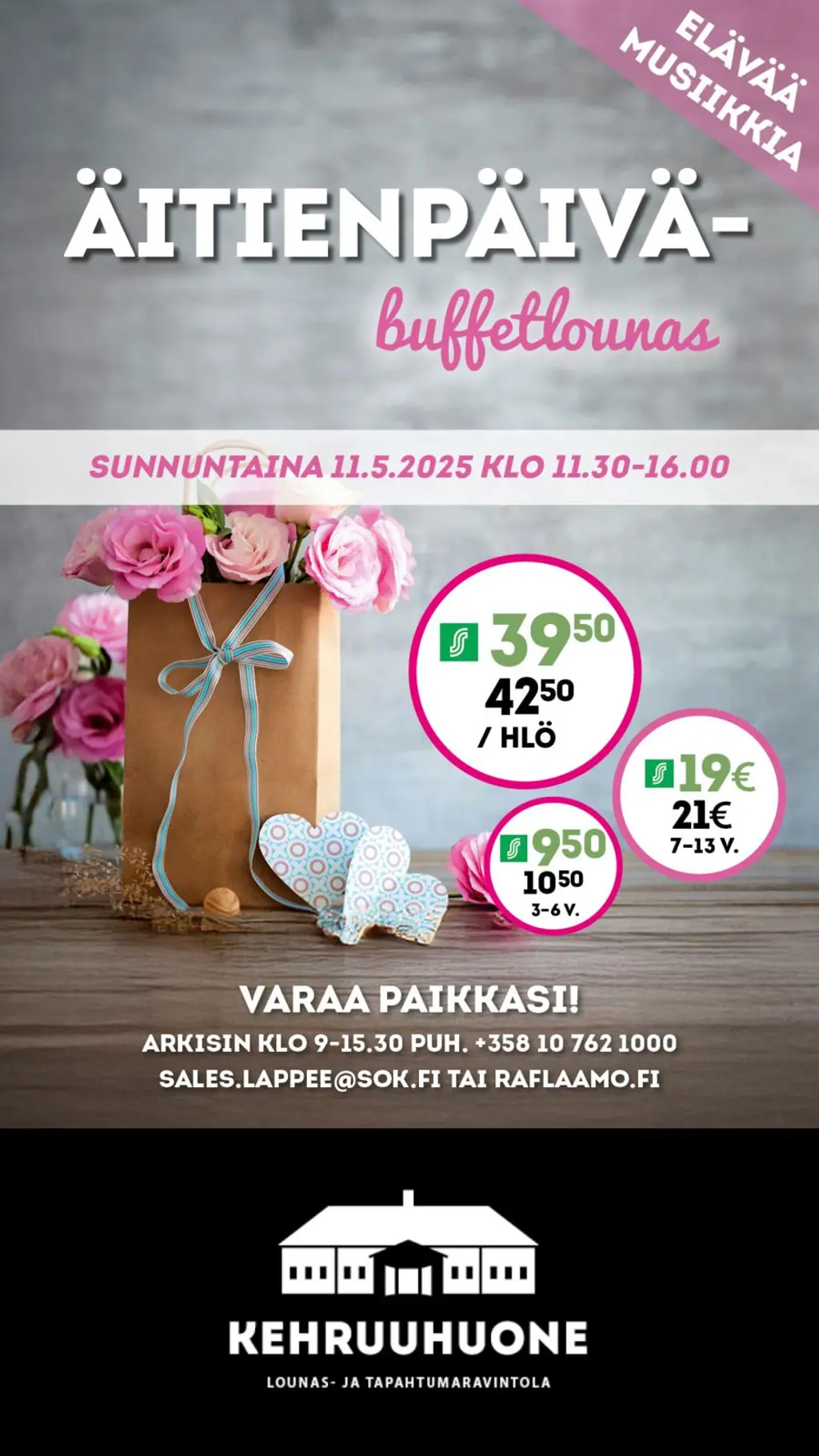 sunnuntaina 11.5.2025 klo 11.30–16.00Äitienpäivän buffetlounas: