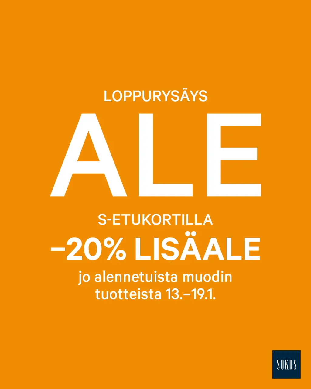 Talviale alkoi Sokoksella!Tee sensaatiomaisia löytöjä jopa 50 % alennuksella. Valikoimassa on runsaasti naisten ja miesten muotia, kodintekstiilejä ja sisustustuotteita sekä kosmetiikan suosikkeja.Tervetuloa tekemään upeita alelöytöjä myymälöissämme ja verkkokaupassa sokos.fi 27.12.2024–19.1.2025.