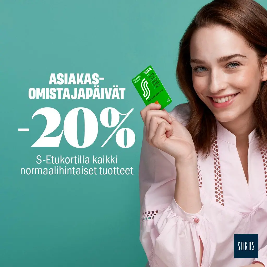 AO-päivät 2.-5.11.2023 Sokoksella, S-etukortilla kaikki normaalihintaiset tuotteet –20%