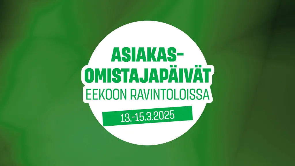 13.-15.3. vietetään Asiakasomistajapäiviä Eekoon Ravintoloissa.