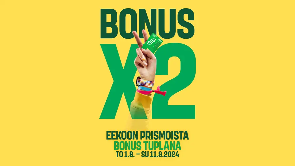 Bonus on ostohyvitys eli rahaa, joka sinulle maksetaan asiakasomistajaetuna kaikista S-ryhmän ja yhteistyökumppaneiden bonustoimipaikoista.Bonus tuplana on määräaikainen kampanjaetu, jossa kampanjassa mukana olevat toimipaikat maksavat Bonuksen kaksinkertaisena. Kampanjaostot kirjataan bonusostoihin sellaisenaan, mutta niistä kertyvä Bonus maksetaan tuplana. Etu koskee vain kampanjan aikana kampanjatoimipaikoissa tehtyjä ostoja.Bonusprosentin määrää bonusostojen loppusumma. Esimerkiksi, jos taloutesi yhteenlasketuilla bonusostoilla kampanjakuukauden bonusprosenttisi on 5 %, niin saat Bonus tuplana -kampanjaostoista 10 % Bonusta.Etkö vielä ole asiakasomistaja? Liity tästä ja hyödynnä 100 euron liittymisetu!