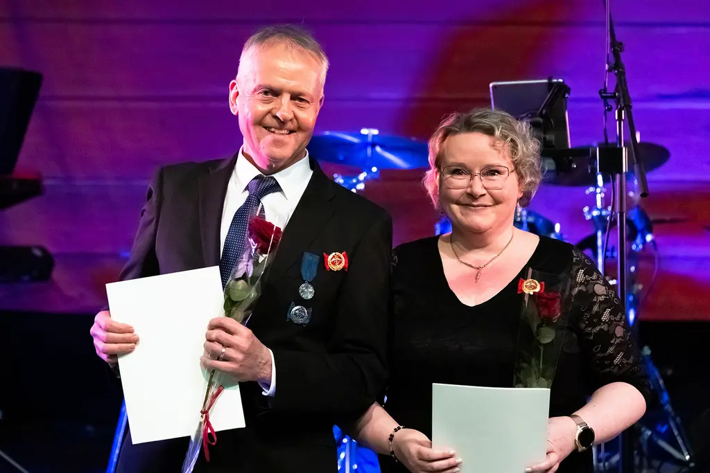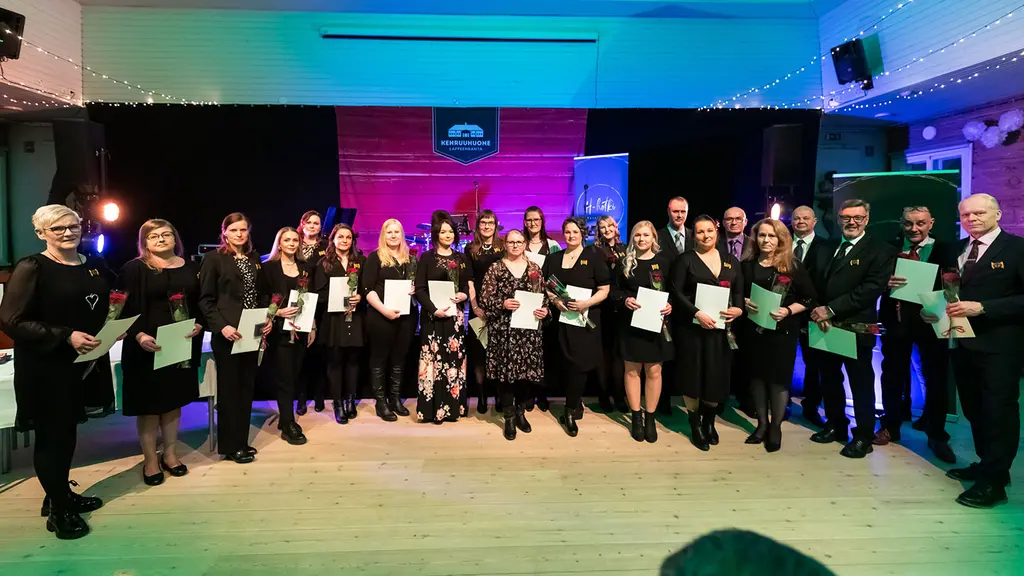 Arvomerkkijuhlassa yhdeksän ansioitunutta eekoolaista sai presidentin myöntämän kunniamerkin. – Olen todella otettu tästä huomionnista. Se osoittaa, että olen tehnyt työni hyvin ja työantajani arvostaa työpanostani, Suomen Leijonan ansioristin saanut sisäinen tarkastaja Tiina Alho (oikealla) kiitteli.Vapaata tai rahaa työuran tasavuosista