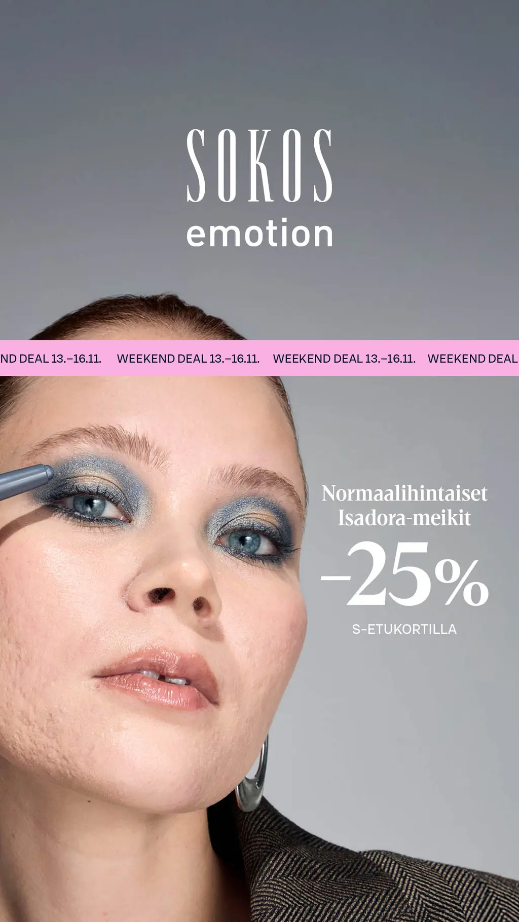 IsaDora Weekend Deal Sokoksella 13.-16.11. Saat S-etukortilla kaikki IsaDora tuotteet -20 %.