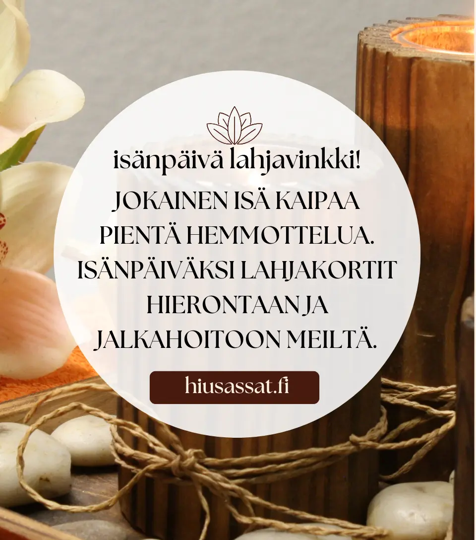 Isänpäivälahjaksi lahjakortti hierontaan ja jalkahoitoon