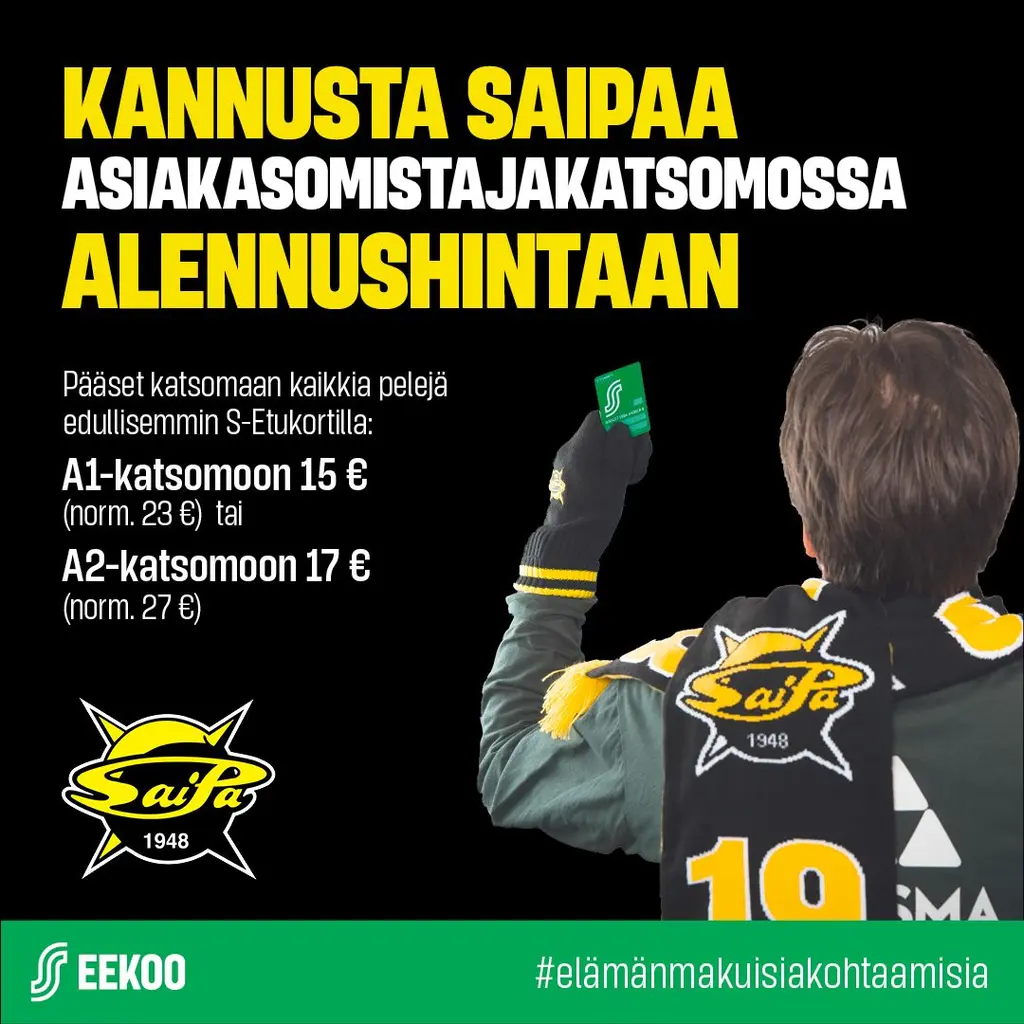 Kotipelien jälkeen tunnelmaa on nostattamassa jälkipelijuontajina vuorottelevat ja halliltakin tutut Jussi Viljakainen tai Vesa Surakka. Mukana tietenkin SaiPasta edustamassa pelaajavieras, jonka haastattelun pääset kuulemaan livenä.Jälkipeleissä arvotaan myös kaikkien paikalle tulijoiden kesken ruokalahjakortti ja voit tulla haastamaan pelaajavieraan myös uuteen nopeuspeliin!Vieraspelit voit nauttia Birran jättiscreeniltä, samalla nauttien kylmiä virvokkeita ja herkullisia ruokia.