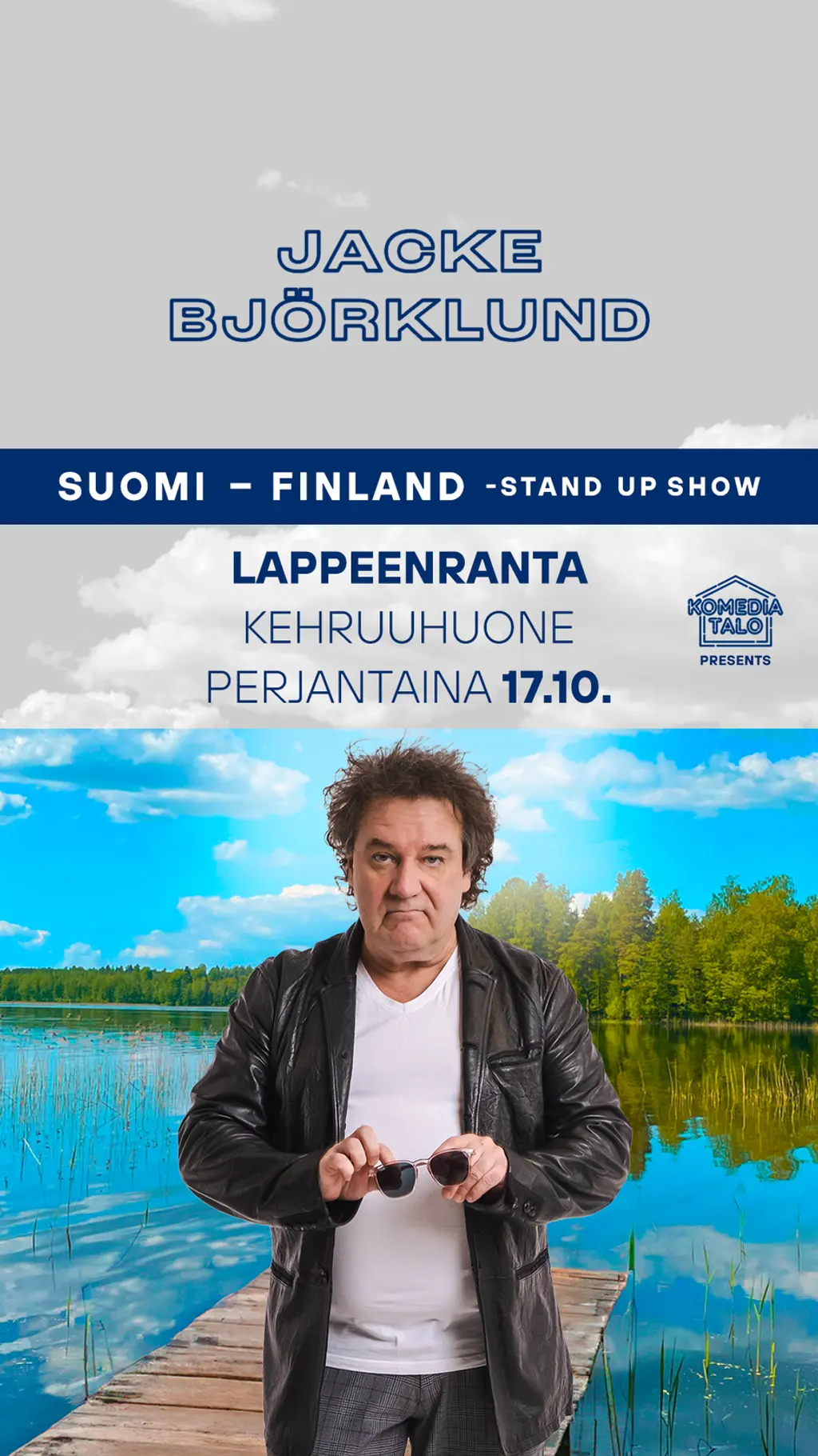 Jacke Björklundin Stand up show KehruuhuoneellaJacke Björklund esiintyy Kehruuhuoneella perjantaina 17.10.2025. Show alkaa klo 19.00 ja ovet Kehruuhuoneelle aukeavat klo 18.00. Shown kesto on noin kaksi tuntia väliajan kanssa. Tapahtuma on K-18 ja liput tapahtumaan myy Ticketmaster.Tule etkoilemaan ennen showta! 🥂 Saatavilla on raikkaita juomia ja Kehruun tapaslautanen hintaan 15€. Voit varata tapaslautasen ennakkoon soittamalla Kehruuhuoneelle p. 045 6148677. Tule viettämään nauruntäyteistä iltaa kanssamme Kehruulle! 💃🏼#kehruuhuone #standup #eekoo #lappeenranta #elämänmakuisiakohtaamisia