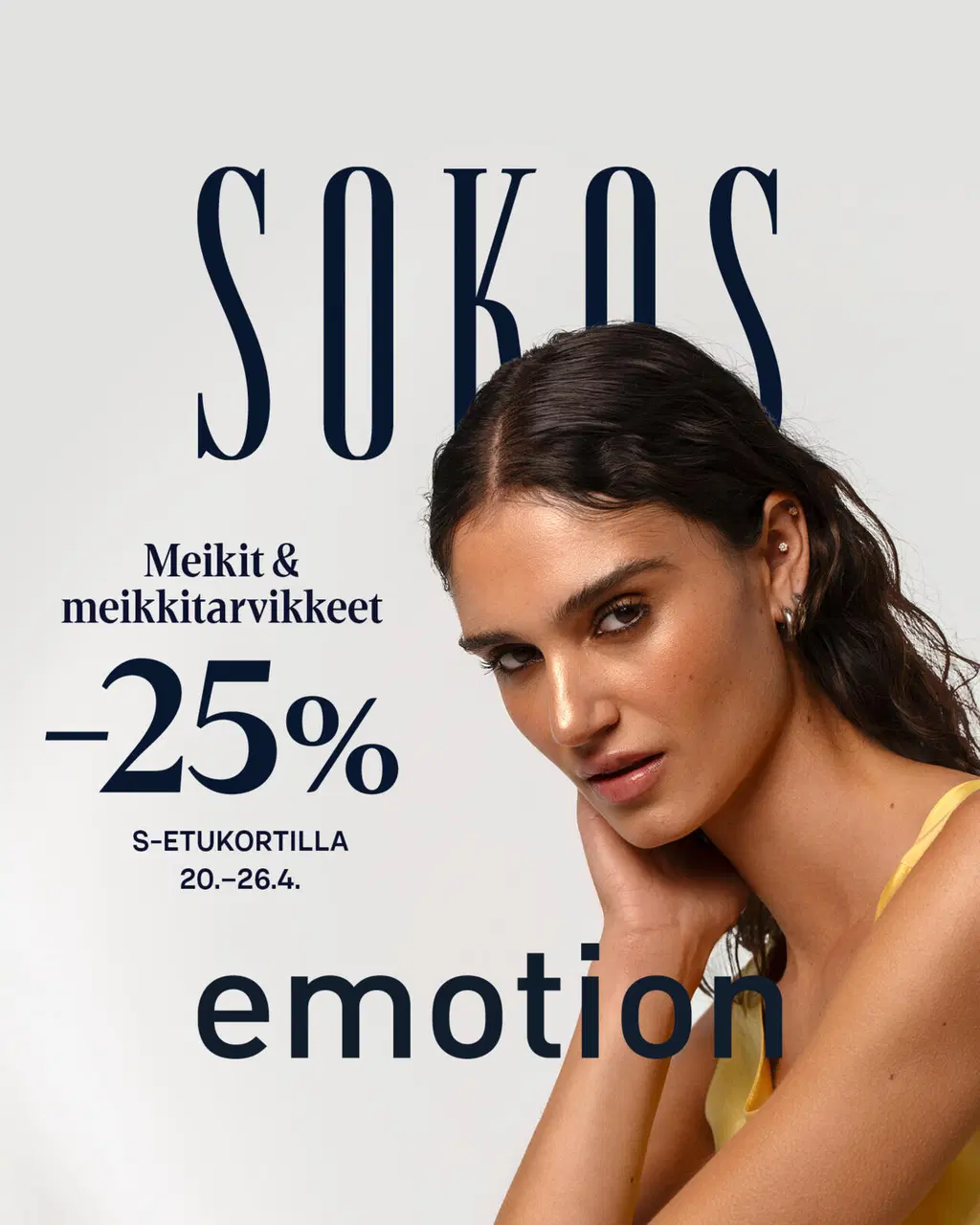 Tee kevään upein juhlalook laadukkailla kosmetiikkatuotteilla!Saat S-Etukortilla –25% meikeistä ja meikkitarvikkeista 20.–26.4.2026 Sokoksella, Sokos Emotionissa ja sokos.fi-verkkokaupassa.Etu koskee normaalihintaisia meikkejä, meikkitarvikkeita sekä kynsi- ja ripsituotteita. Etu ei koske lahjapakkauksia.