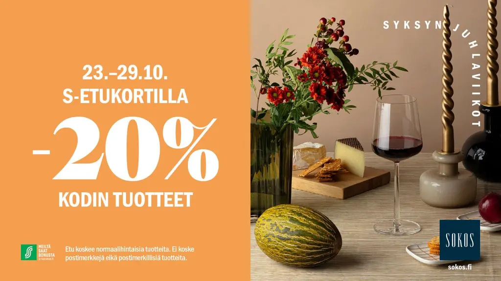 Lappeenrannan Sokoksella kodin tuotteet S-etukortilla -20 %