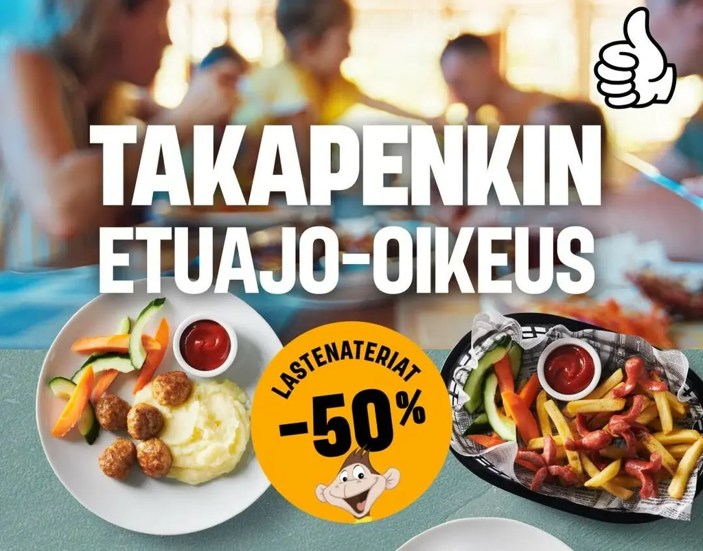 Kesälomareissu edessä?Kun tien päällä iskee nälkä, kannattaa kurvata lähimpään ABC Liikennemyymälään Imatralle, Viipurinporttiin tai Särkisalmelle. Lomakauden kunniaksi tarjoamme 1.–31.7.2024 kaikki lastenateriat puoleen hintaan. Tarjous koskee aikuisen seurassa ruokailevia alle 12-vuotiaita lapsia, max. 4 annosta/tilaus. Tarjous ei koske ryhmiä.Maistuisiko lihapullat ja muusi tai nakit ja ranskalaiset? Apsi Apinan ruokalistalta löytyy perinteisiä klassikkoannoksia ja muita suolaisen nälkään sopivia herkkuja. Monipuolisessa ABC Noutopöydässä on puolestaan tarjolla päivittäin vaihtuvia lämpimiä ruokia myös perheen pienempien makuun. Vihreä salaattipöytä, raikas ruokajuoma sekä jälkiruokajäätelö tai -mehujää kruunaavat aterian.Voit myös tilata ja maksaa ruoka-annokset ABC-mobiililla kätevästi ennakkoon, nauttia paikan päällä tai ottaa mukaan.