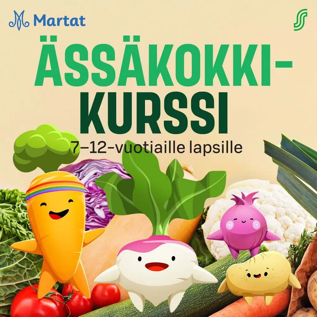 Kursseihin pääsee ilmoittautumaan linkistä: https://www.martat.fi/kaakkois-suomi/tapahtumat/Koululaisten kesälomakauden alkaessa ruokakurssit antavat paitsi tärkeää ruokakasvatusta, ja ehkäisevät myös lasten ja nuorten yksinäisyyttä kesäaikaan. Kursseilla keskitytään taloudelliseen, terveelliseen, maistuvaan ja mukavaan kotikokkailuun koululaisille sopivalla tavalla. Yhteisiä Ässäkokki-ruokakursseja on järjestetty jo vuodesta 2018 alkaen.”Haluamme mahdollistaa kaikille lapsille pääsyn keittiöön kokemaan ruokailoa ja oppimaan uutta. Tässä taloustilanteessa S-ryhmän tuki mahdollistaa monien perheiden lapsille osallistumisen ruokakurssille. Kurssilla opittavat kotitaloustaidot ja kestävän arjen opit kulkevat perheisiin lasten kautta”, kertoo pääsihteeri Marianne Heikkilä Marttaliitosta.S-ryhmä haluaa kannustaa asiakkaita kiinnittämään huomioita fiksuihin ruokavalintoihin. Ryhmän vastuullisuusohjelman tavoitteena on kasvispohjaisten ruokien määrän nostamisen 65 prosenttiin kaikesta myydystä ruoasta vuoteen 2030 mennessä.”Ässäkokki-toiminta on meille luonteva tapa olla mukana edistämässä lasten ruokakasvatusta ja osallisuuden kokemusta. Olemme sitoutuneet edistämään itselle ja ilmastolle fiksua ruokavaliota. Haluamme myös madaltaa kynnystä ruokakursseille pääsemiseksi ja tarjota niitä osuuskauppojen kanssa eri alueilla. Kurssit ovat todella toivottuja”, sanoo vastuullisuusjohtaja Nina Elomaa S-ryhmästä.Tänä keväänä ruokakursseja on järjestetty jo lähes 30, ja niille on päässyt osallistumaan jo noin 270 lasta muun muassa Pohjanmaalla, Lounais-Suomessa, Hämeessä, Kainuussa, Pirkanmaalla ja Savossa.