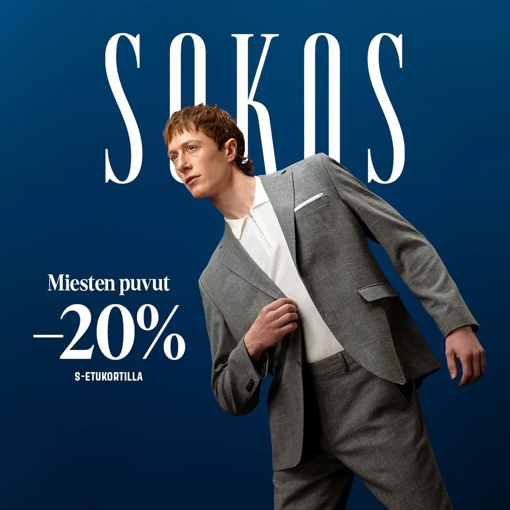5.–18.5.2025 SokokseltaPuku jos mikä tekee tilanteesta juhlan.Saat normaalihintaiset miesten puvut –20 % S-Etukortilla 5.–18.5. Sokokselta sekä verkkokaupasta sokos.fi.