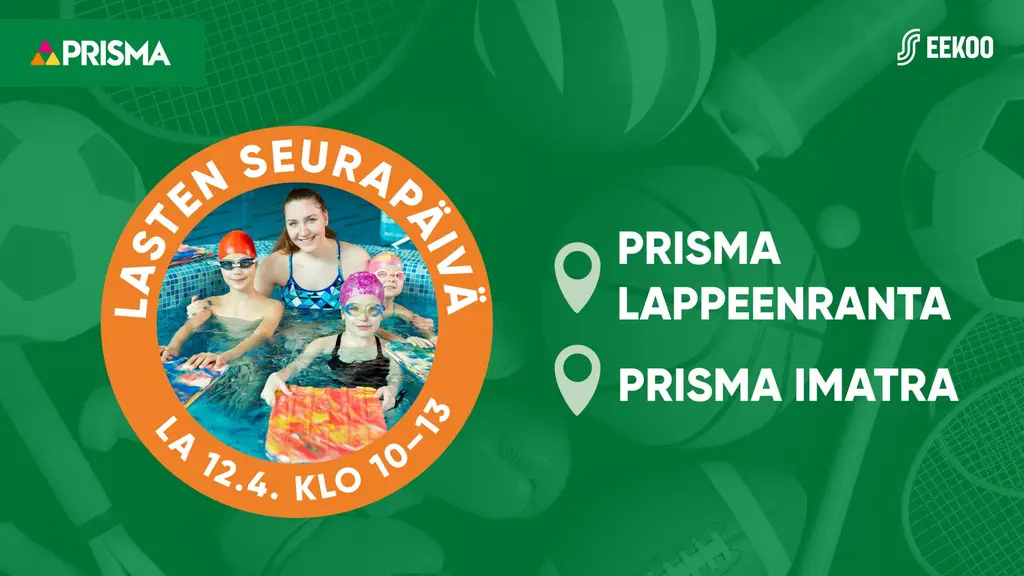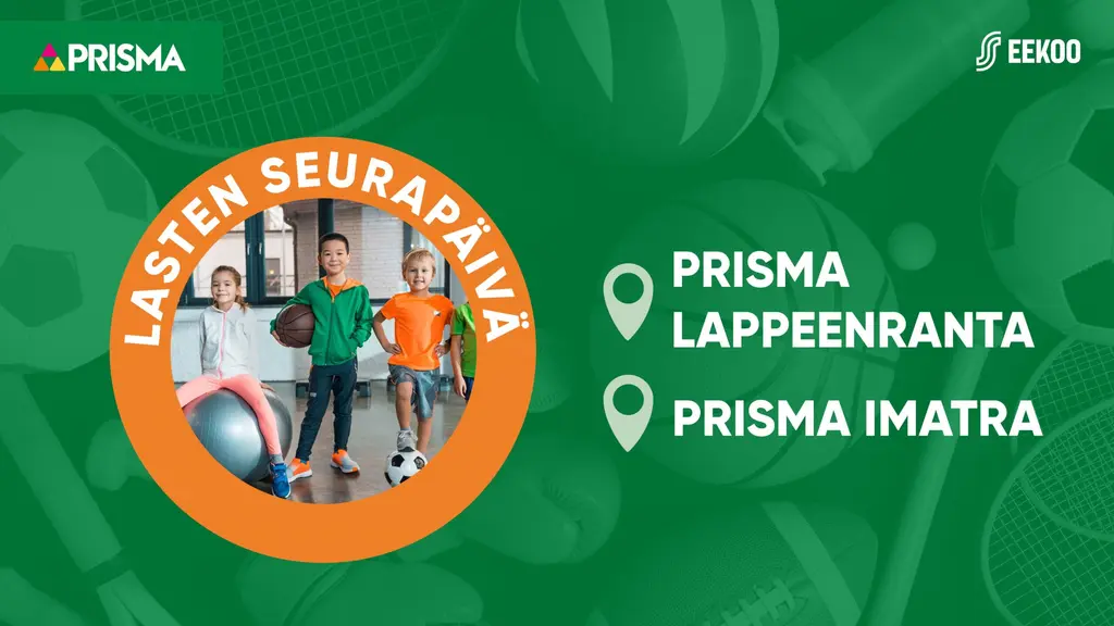 Onko sinun perheessäsi etsinnässä uusi harrastus? ??????♀️ Eekoon Prismoissa Lappeenrannan Puhakankadulla sekä Imatralla vietetään Lasten seurapäivää lauantaina 12.4.2025 klo 10–13.⚽️ Seurapäivässä paikalliset urheiluseurat esittelevät omaa toimintaansa ja harrastustarjontaansa. Ohjelmassa on monipuolisia aktiviteetteja lapsille sekä eri lajien väline-esittelyjä ja -testausta.? Prismoissa lasten pukeutumisen tuotteet sekä palloilutuotteet ovat tapahtumapäivänä -20 % S-Etukortilla. S-mobiilikupongilla saat haluamastasi terveys- tai urheiluravinnetuotteesta -30 % alennuksen.Tervetuloa koko perheen voimin mukaan Lasten seurapäivään!?