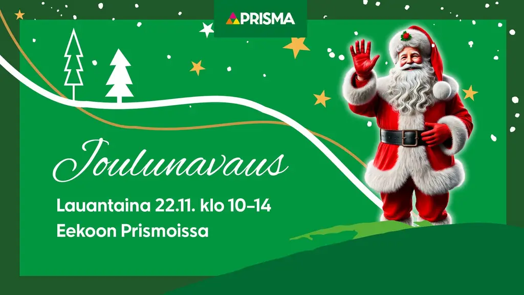 Kaikissa Eekoon Prismoissa vietetään joulunavausta lauantaina 22.11.2025 klo 10-14. Joulunavauksen aikaan Prismoissa on paljon näkemistä ja tekemistä lapsille sekä lapsiperheille. Tule paikalle tapaamaan joulupukkia, askartelemaan joulukortteja tai nauttimaan joulun tunnelmasta glögi- ja piparitarjoilun muodossa. Joulunavauksen ohjelma: Prisma Lappeenranta