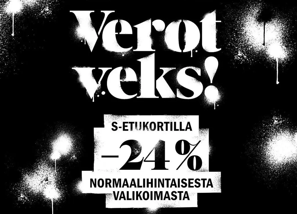 Huomenna, torstaina 3.8. kaikki normaalihintaiset tuotteet saa 24 % alennuksella.