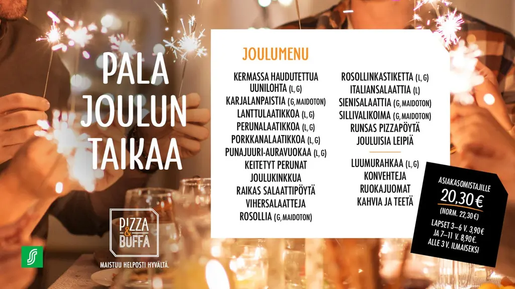 UUTINENTuo joulu pöytään jo ennakkoon – Pizza & Buffan joululounas kutsuu herkuttelemaan