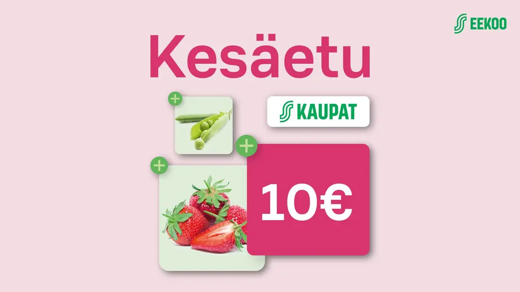 Kampanjan aikana tehdyistä yli 150€:n arvoisista ruoan verkkokauppaostoksista saat 10 euron arvoisen kesäedun seuraavaan yli 100 euron arvoiseen tilaukseesi hyödynnettäväksi.Verkkokaupan Kesäetu -kampanja alkoi maanantaina 23.6.2025 ja jatkuu aina heinäkuun loppupuolelle sunnuntaihin 27.7.2025 asti.Kampanjan aikana tehdyistä yli 150€:n arvoisista ruoan verkkokauppaostoksista saat 10 euron arvoisen kesäedun seuraavaan yli 100 euron arvoiseen tilaukseesi hyödynnettäväksi. 10 euron arvoinen kesäetu on käytettävissä sunnuntaihin 17.8.2025 asti. Kesäetu on saatavissa sekä noudoista, kotiinkuljetuksista että tunnin toimituksista.Nyt jos koskaan ruoan verkkokaupasta ostaminen kannattaa!