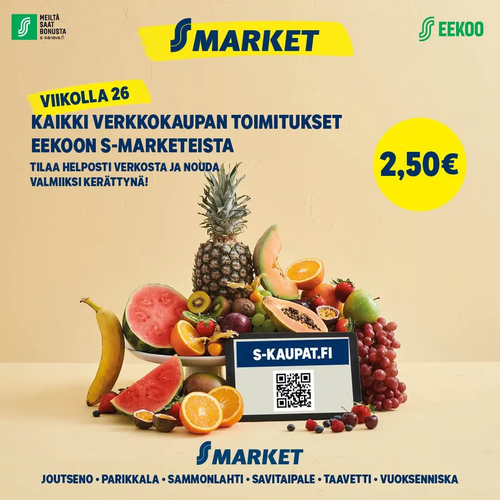 Viikon 26 aikana kaikki verkkokaupan toimitukset saa poikkeuksellisesti Eekoon S-marketeista kampanjahintaan 2,50€.