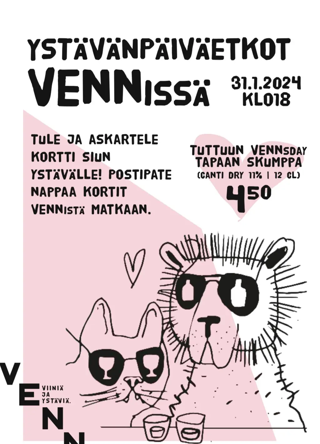 Ystävänpäiväetkot VENNissä keskiviikkona 31.1.2024 klo 18.00